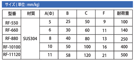 ・材質はステンレス(SUS304)、防錆効果があり高強度です。